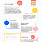 Pour les fruits et les légumes : Plongez-les 15 min dans de l’eau chaude avec une cuillère de bicarbonate. Cette solution élimine les bactéries et les résidus de pesticides.