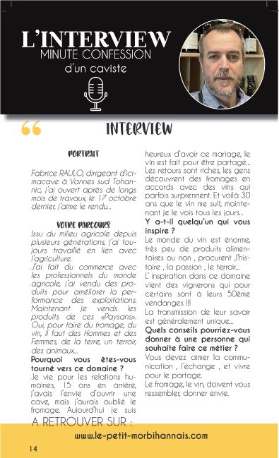 Je vie pour les relations humaines, 15 ans en arrière, j’avais l’envie d’ouvrir une cave, mais j’aurais oublié le fromage. Aujourd’hui je suis heureux d’avoir ce mariage, le vin est fait pour être partagé… Les retours sont riches, les gens découvrent des fromages en accords avec des vins qui parfois surprennent. Et voilà 30 ans que le vin me suit, maintenant je le vois tous les jours…