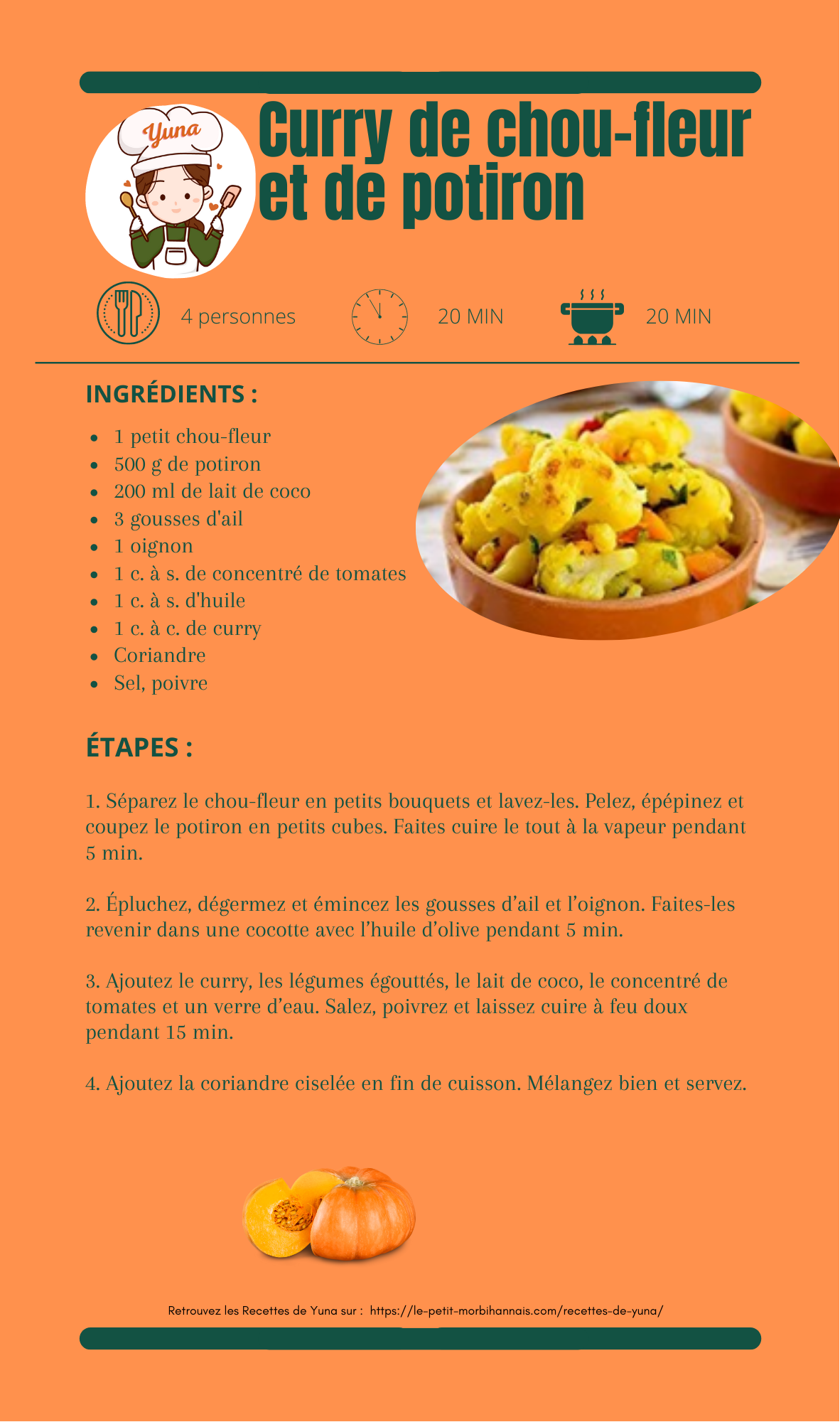 Aujourd’hui Yuna vous propose de préparer le curry de chou-fleur et potiron.