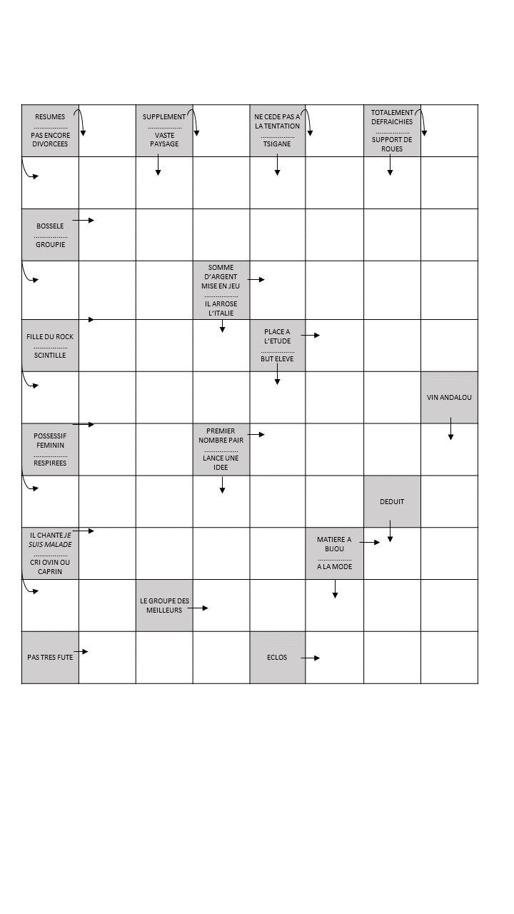 Le Sudoku, le Takuzu, les Mots Fléchés.