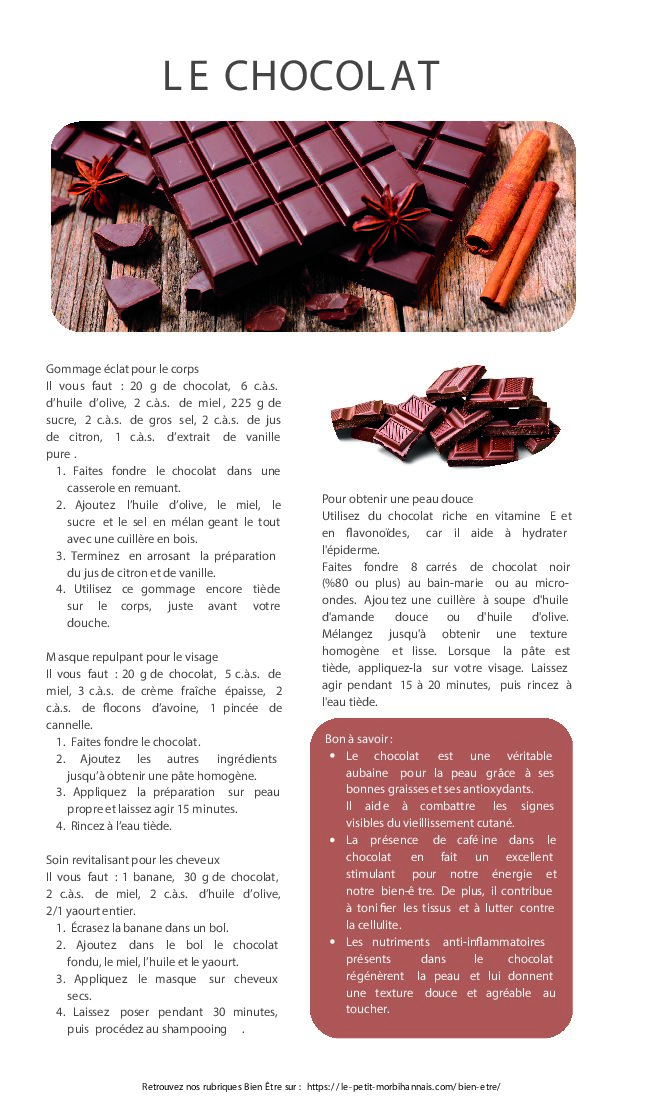 Il vous faut : 20 g de chocolat, 5 c.à.s. de