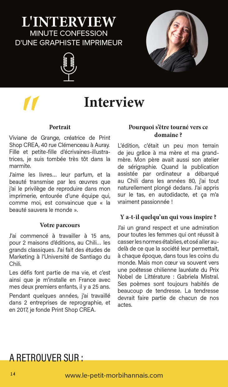 Viviane de Grange, créatrice de Print Shop CREA, 40 rue Clémenceau à Auray. Fille et petite-fille d’écrivaines-illustratrices, je suis tombée très tôt dans la marmite.