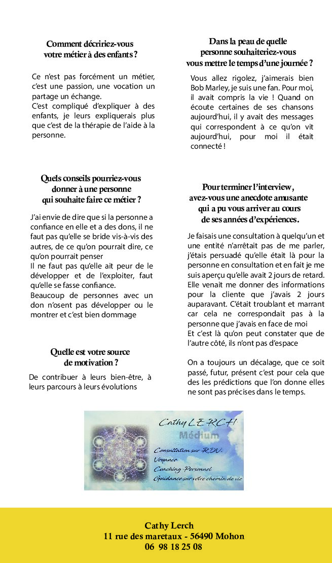 Depuis aussi loin que je me souvienne, j’ai toujours été différente. J’ai toujours eu cette capacité à percevoir des choses, à entendre, à ressentir avec une grande justesse. Longtemps, j’ai mis tout cela de côté, je l’ai ignoré. Mais il y a une vingtaine d’années, un choc émotionnel a tout amplifié. C’est à ce moment-là que j’ai pleinement accepté ce don.