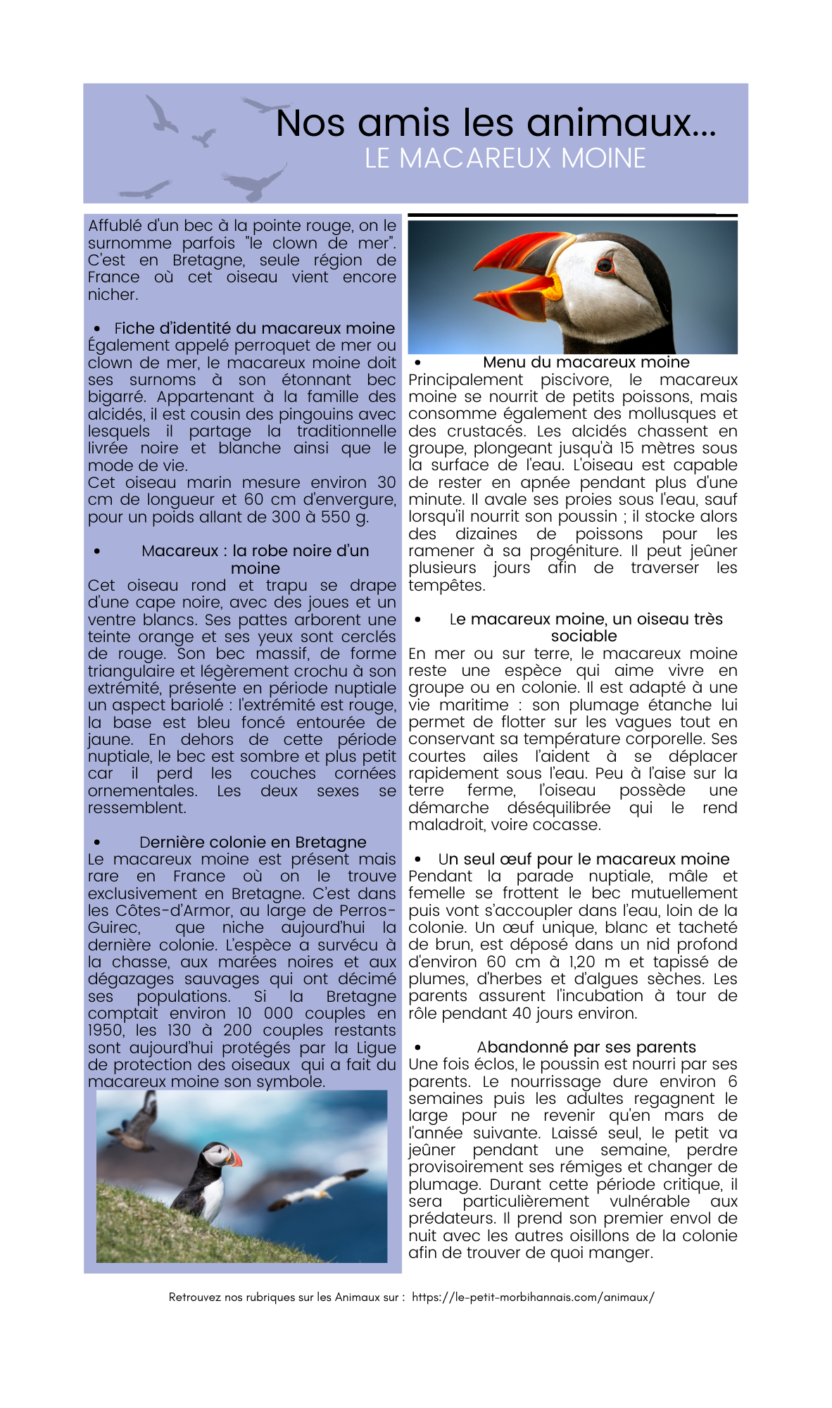 - Fiche d’identité du macareux moine